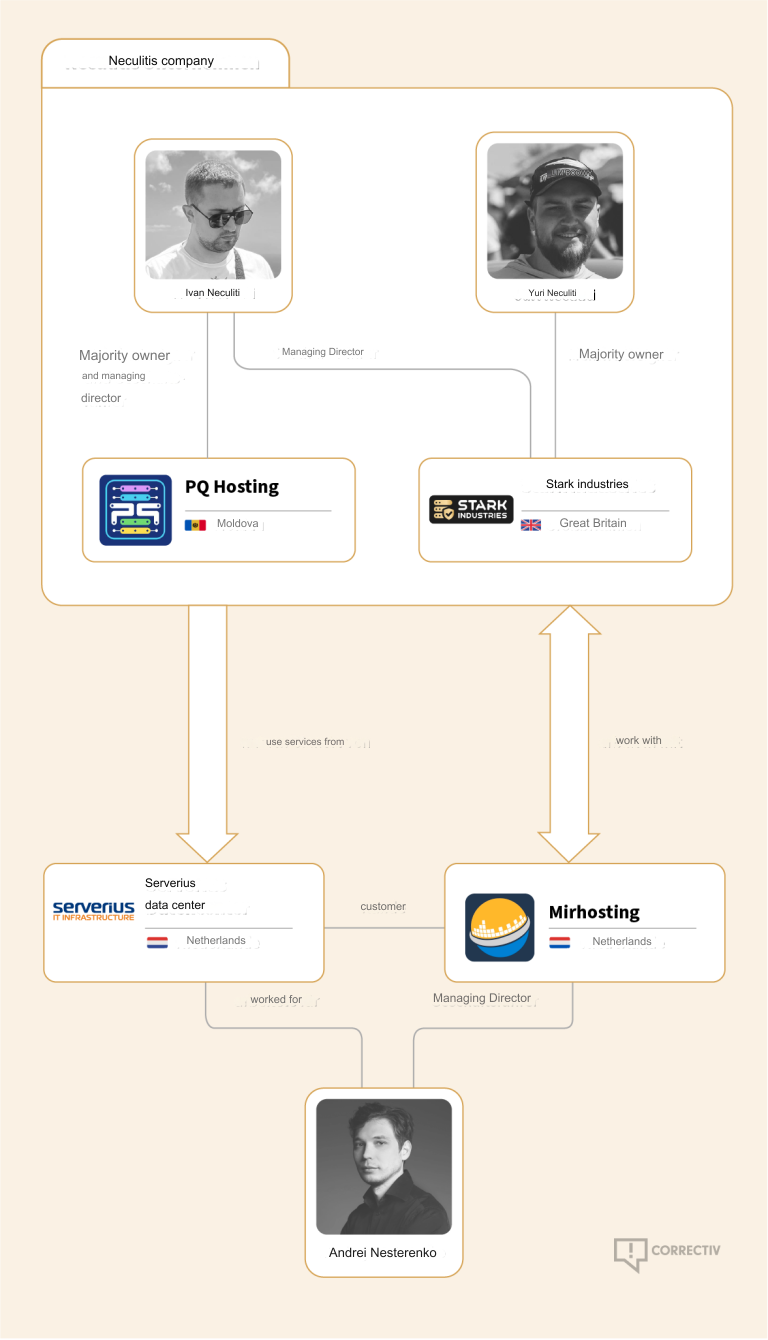 In May 2025, the European Union sanctioned one of Stark’s two main conduits to the larger Internet — Moldova-based PQ Hosting — as well as the company’s Moldovan owners Yuri and Ivan Neculiti. The EU Commission said the Neculiti brothers and PQ Hosting were linked to Russia’s hybrid warfare efforts.