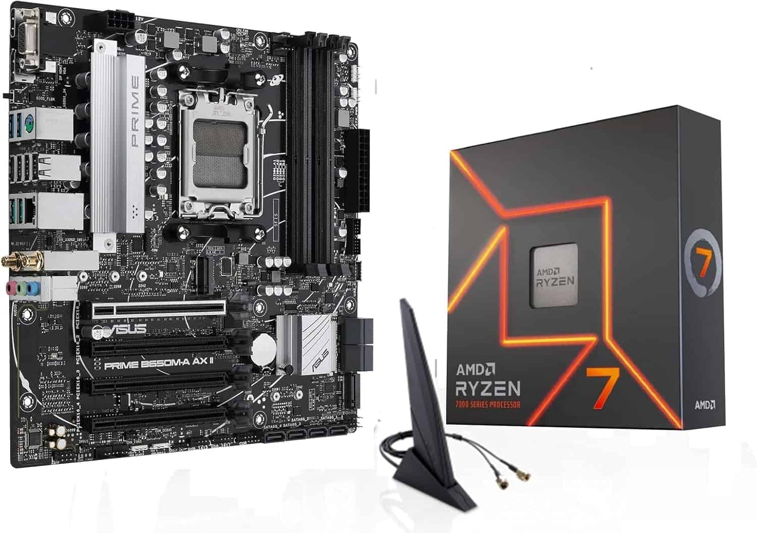 The bundle includes the Ryzen 7 7700X CPU and the ASUS Prime B650M-A motherboard – both well-suited for today’s mid-range PC builds. Whether you’re aiming for gaming or productivity, this pairing provides a strong starting point with plenty of upgrade potential.